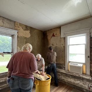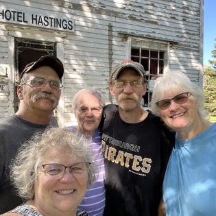 With the support of friends and family alike, the Piepers are making progress towards a grand opening. Using old pictures and documents to restore rather than renovate, Hotel Hastings is now home to working electricity, brand new plumbing, and its first modern toilet. Floor heat was installed in the basement, and a fire stove installed upstairs to keep warm during the fall months. The roof has been redone and the false front repaired to its original condition. All of the wildlife living inside was relocated, and the outside windows and holes sealed. It has gotten new windows, a new porch and second level deck just like the original. Walls were taken down and put up to mimic the original floorplan. A reclaimed wood floor was installed in the dining room, as the old floor was a hole in the ground covered by plywood.