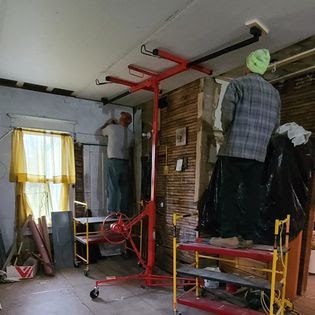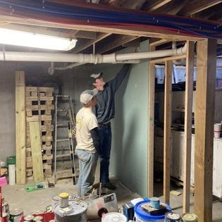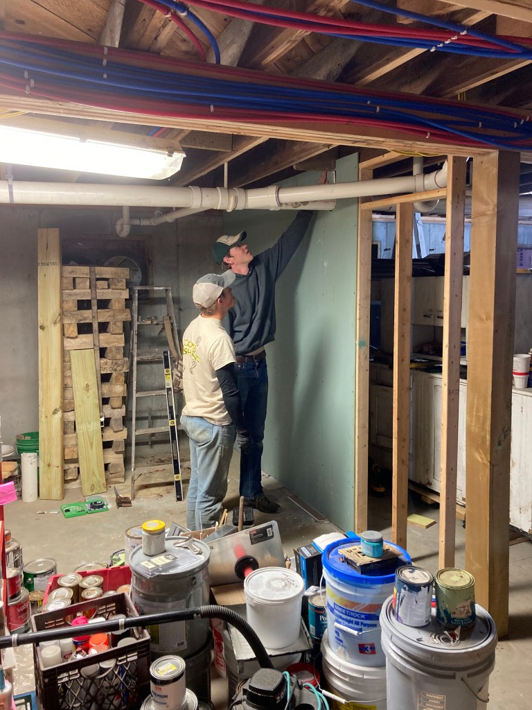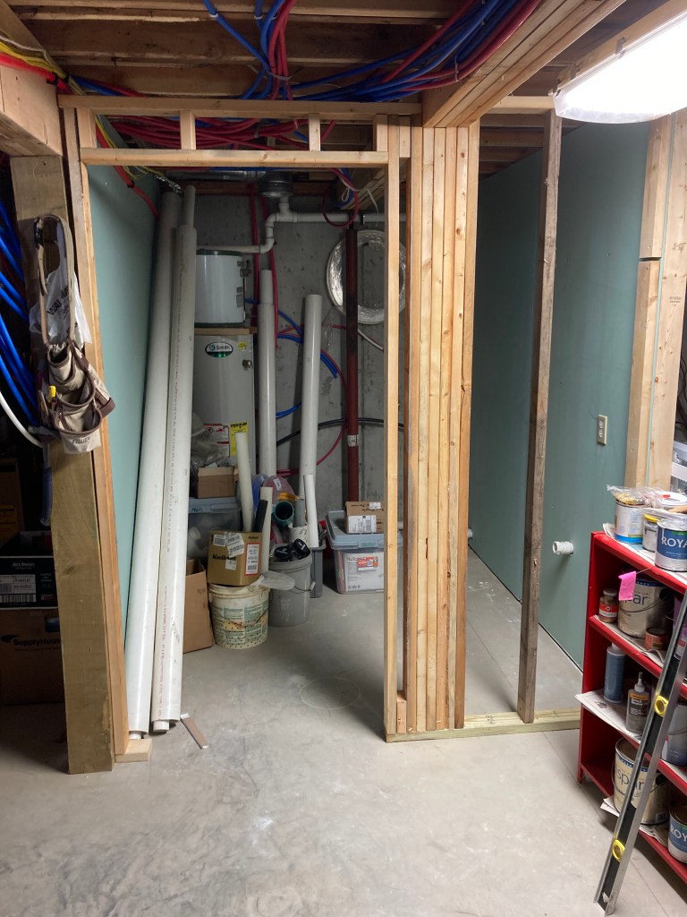 More finishing up, Electrical outlets installed and lights. Closing up any open space to the outside. Sheetrock and wallboard installation. Brand new windows in the basement were installed.