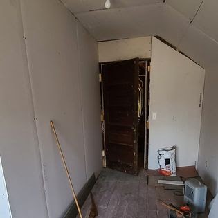 A new metal roof was added this year, along with a plumbed in toilet. More objects were found stuffed in attic walls and floorboards. The attic finally got a little attention with wall torn down and redone.