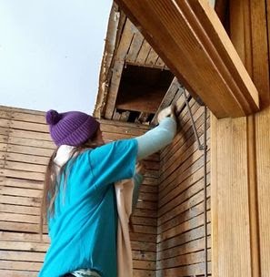A dinning room floor made from reclaimed wood was put in. The Pieper’s stayed long into winter at the hotel. Progress was made in attic and bathrooms. Lots of small projects were finished up.